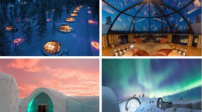 Sebuah desa bernama Igloo di Kakslauttanen, Finlandia dapat menjadi tempat terbaik bagi Anda untuk mengamati Northern Lights dari sebuah kamar mewah. Setiap ruangan memungkinkan Anda memandangi bintang dan turunnya salju dalam keadaan hangat.