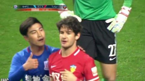 Bola tendangan Pato melambung jauh di atas mistar gawang Shenhua.